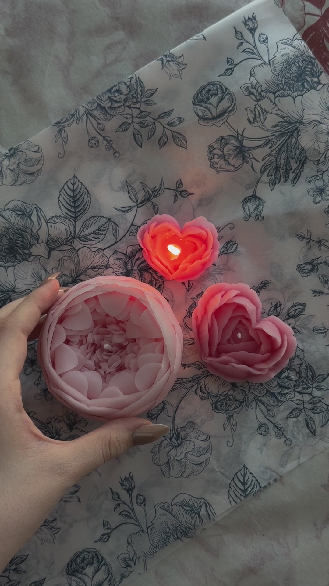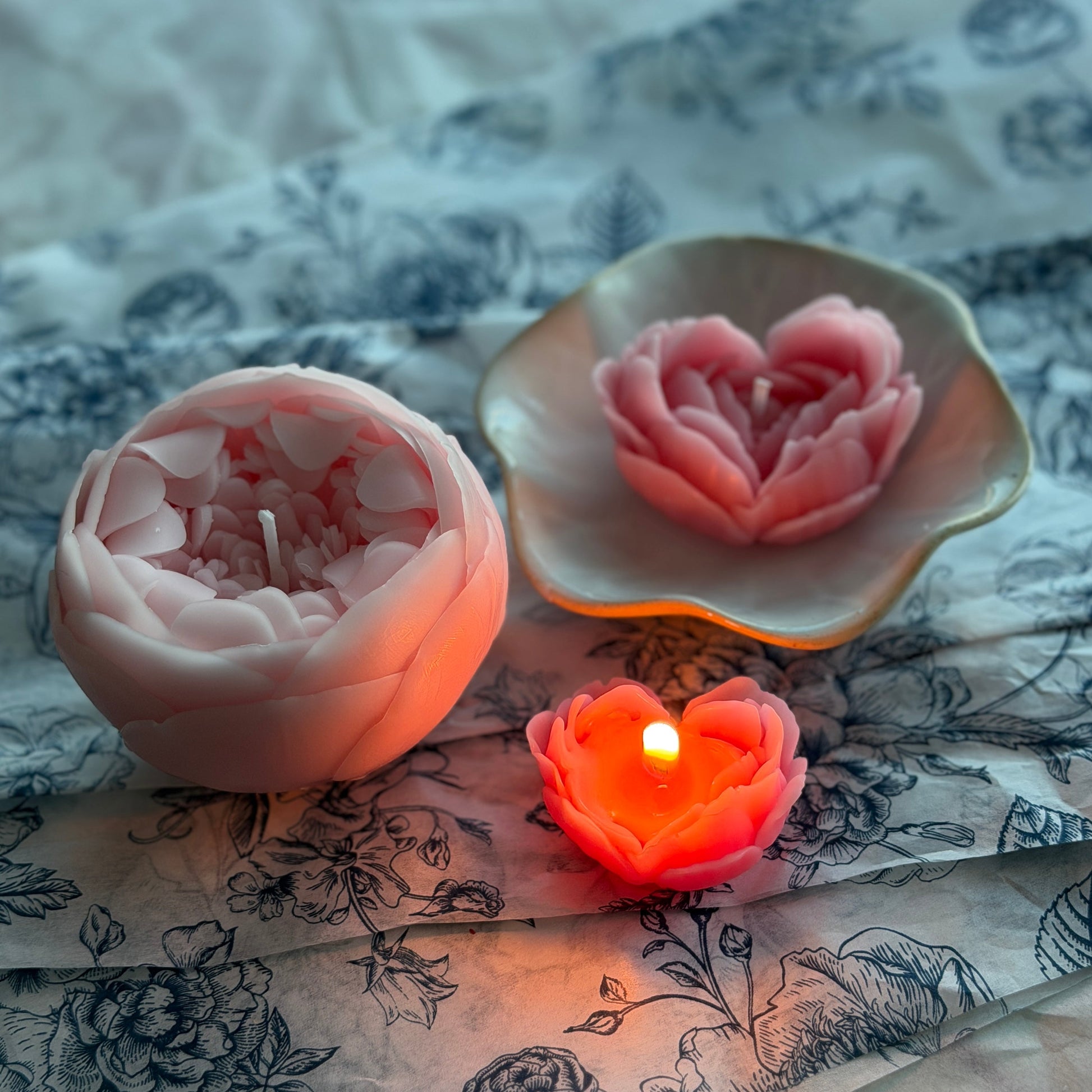 100% Beeswax and Handmade Peony and Rose Flower Candles.